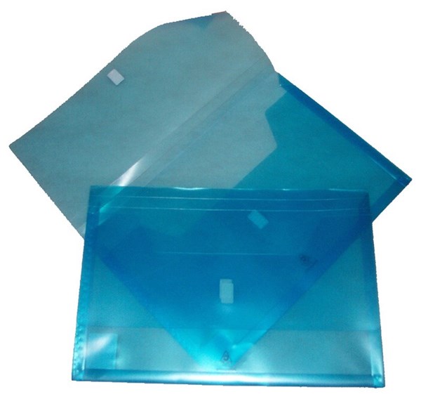 F/C copy safe, see-through gussetted storage wallet with hook and loop closure.