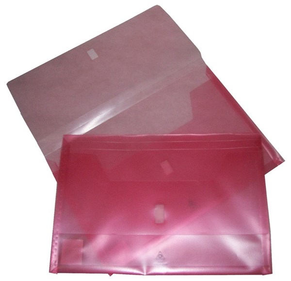 F/C copy safe, see-through gussetted storage wallet with hook and loop closure.