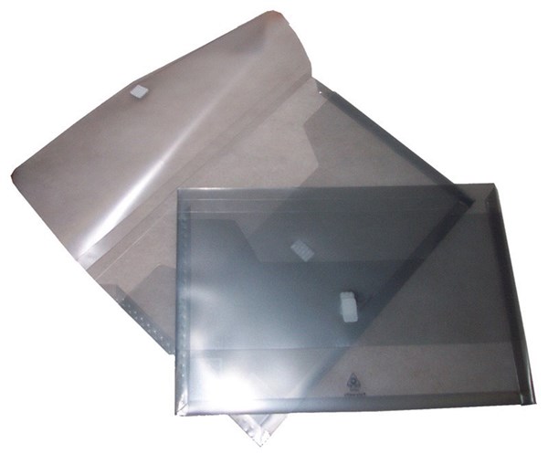 F/C copy safe, see-through gussetted storage wallet with hook and loop closure.