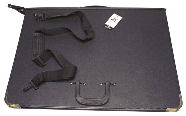 Premium quality zippered A2 embossed PVC Artist's Portfolio with 6 metal rings, metal corners, shoulder strap and handles.